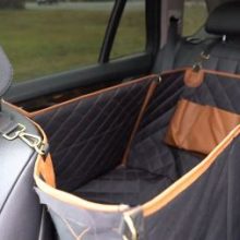 I love this dog hammock, I got a new car and my dog absolutely loves to ride. With leather seats, I was afraid he would tear up the seats with his nails. This dog hammock fit perfectly in the back seat, allowing my dog enough room to enjoy the car rides while also protecting the leather. It is machine washable so when it gets dirty, you just throw it in the wash.