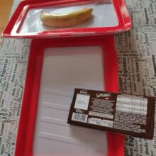 I had been tempted by advertisements for these food preservation trays for a while and finally took the plunge. I think they are great! You can put an entire lunch in them or leftovers and they are much more compact than ziploc containers. The clear cover is stretchy so it can accommodate things with a bit of depth like a sandwich or a banana. They are neat because you can put your lunch in them and they take up about the same amount of space as a laptop in your bag. It slides easily in between your books. In the fridge, they nest together well. Instead of layering leftovers between wax paper, I can divide them up in separate trays and stack them. So far they wash well and return to their original shape after using them. I’m glad I tried them! I will be buying a couple more.