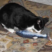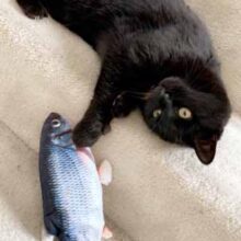 When you’re too busy with the stresses and demands of daily life to continue jingling bells or throwing tennis balls around to entertain your pet cat, it’s time to find a toy that can entertain your kitty all on its own. One that can do its own tricks (without need of human help or control). Enter our Dancing Fish Catnip Kicker Toy, a plush fish that comes to life to keep your cat intrigued for hours.