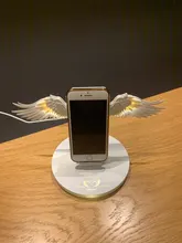 - Das kabellose Ladegerät hat ein spezielles Design. Wenn man das Telefon auflegt, entfalten sich die Flügel der Engel, und der Sockel hat die Aura eines Engels. Die glänzende und glatte Oberfläche sieht sehr innovativ und elegant aus.