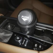 Made from non-toxic ABS plastic, our little trash bin mimics the look of large, full-sized trash cans, with a “PUSH” logo at the lid opening. The can fits right into a standard-sized cup holder for a trash bin for snack wrappers right within your reach. The can measures 7.9 x 2.7 inches (L x W).