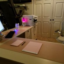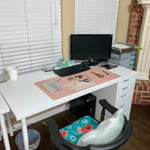 Since quarantine knocked me back to working at home (attorney), and we have a built in desk in the kitchen (we have A home office/music room but it’s not super conducive to my working since my husband also works at home), I use my laptop at home but I like to have the separate mouse and didn’t have a mouse pad. It has a little latch that snaps around it if you want to travel with it. It protects my surface and makes it look clean and coffee stains from my cup clean up nicely, too. It was a great boost for my “home office” and made the kitchen “desk” feel much more like a work space.