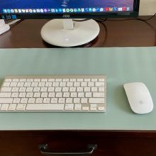 It's perfect for my Apple wireless keyboard and mouse. It protects the main work area of my desk while not interfering with my laptop/external monitor arrangement and other desktop items. The colors are even better than I had expected. the orange is more of a soft peach color, and the green is a silvery sage color. The pad arrived rolled with tissue paper in a sturdy box with an enclosed silica packet. Love this product!
