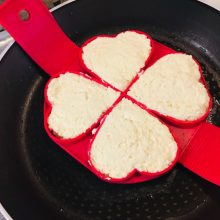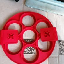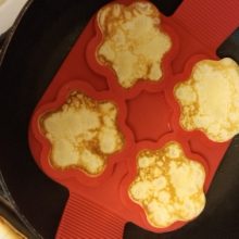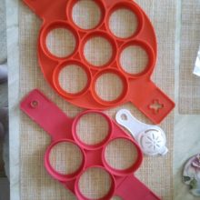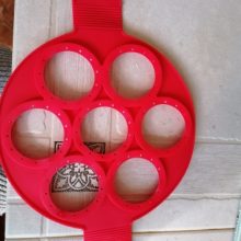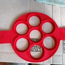 Acessório de cozinha antiaderente para virar comida – a maneira mais rápida, fácil e divertida de fazer sempre umas panquecas perfeitas! Este produto permite virar várias panquecas ao mesmo tempo sem dificuldade. Basta colocar sobre a frigideira já aquecida e deixar cozinhar e depois levantar e virar. O segredo está no anel de silicone antiaderente. A lateral mantém a massa no formato perfeito para uma confeção uniforme, enquanto o anel de base achatada suporta tudo. O silicone apto para fogão e as pegas fáceis de virar mantêmno afastado do calor. Apto para a máquina de lavar loiça. Também é ótimo para ovos, omeletes e muitas outras coisas!