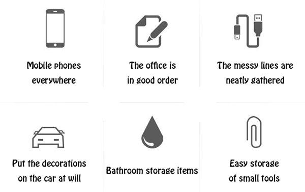 É tão simples como seria de desejar. Aplique-a onde lhe apetecer, o seu telefone irá aderir facilmente. Quer seja para estudar, para se divertir ou conduzir, mantém os seus olhos numa posição segura. Design de armazenamento “intimista”, pendure pequenos objetos e ornamentos, estes também ficam firmemente presos. Até cola garrafas de vidro.