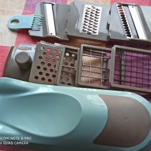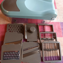 Excelente qualidade! As paredes do recipiente são grossos o suficiente, as facas são muito sharp (cortar cebolas, cenoura crua, e batatas em bruto). Corte não é absolutamente necessário (batatas por exemplo). Muito economiza tempo na cozinha. Transporte rápido! Vendedor recomendar