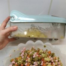 Olá, pessoal! Chopper digno. Facas são muito sharp, cortado com um estrondo. Não ter cuidado. Os esforços devem ser aplicadas, mas não significativo. Plástico é grosso, pesado de excelente qualidade. Lá estão as pernas de borracha macia, não escorregar. Corte de batata demorou exatamente um minuto. Antes de Yekaterinburg o pacote veio por um mês.