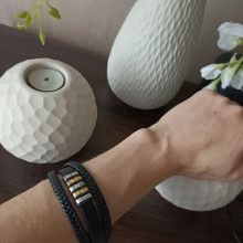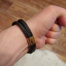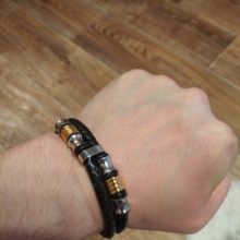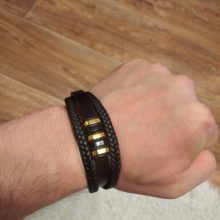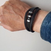 A nossa pulseira masculina possui dois fios de couro de cada lado, criando uma aparência completamente única. Esta pulseira versátil e clássica não só pode ser usada com jeans e t-shirt, como também pode complementar a sua aparência e estilo, seja para surfar na praia ou para usar com o seu smoking na passadeira vermelha!