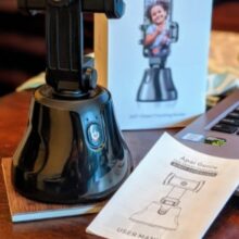 This is basically a selfie stick/tripod hybrid phone mount. This device has come in very handy for taking pictures and videos both indoors and outdoors, and has easily replaceable batteries. It holds your phone and allows for steady video to be taken. The device uses object tracking to follow, ensuring uninterrupted video is taken. It's easy to set up and works as expected.